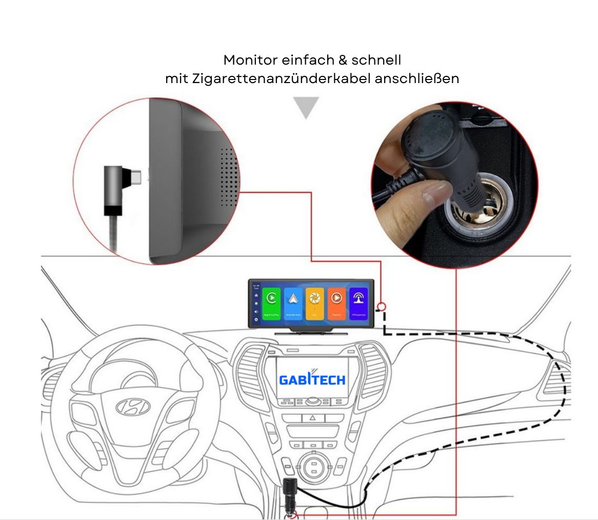 Dieser 10 Zoll Smartscreen verbindet sich nach Einrichtung automatisch mit Ihrem Smartphone und lässt sich einfach durch Ihre Sprache steuern und kann in jedem Auto, LKW oder Wohnmobil verwendet werden.