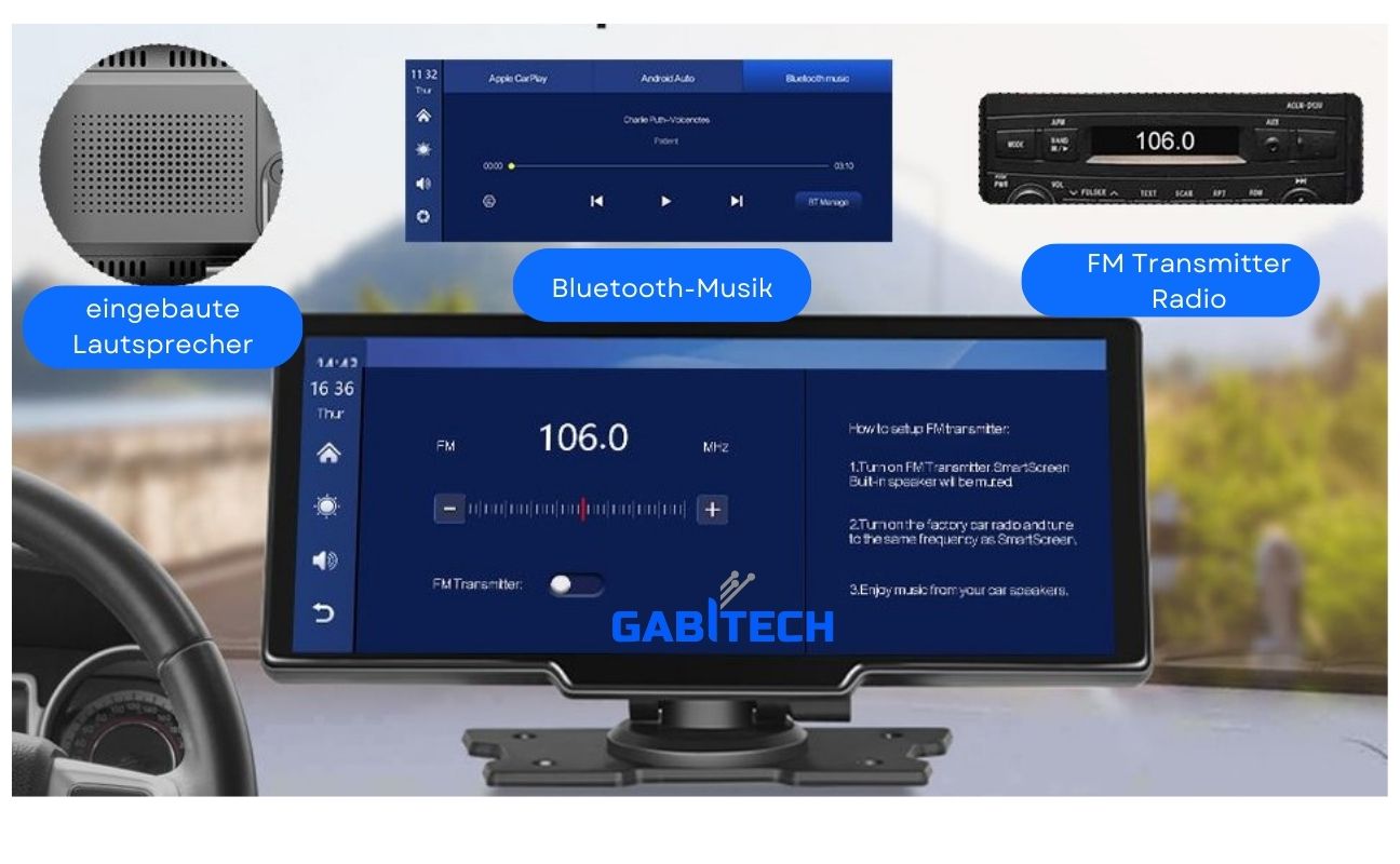• Intelligente Verbindung: Unterstützt IOS CarPlay/Android Auto/Bluetooth-Musik/FM-Übertragung