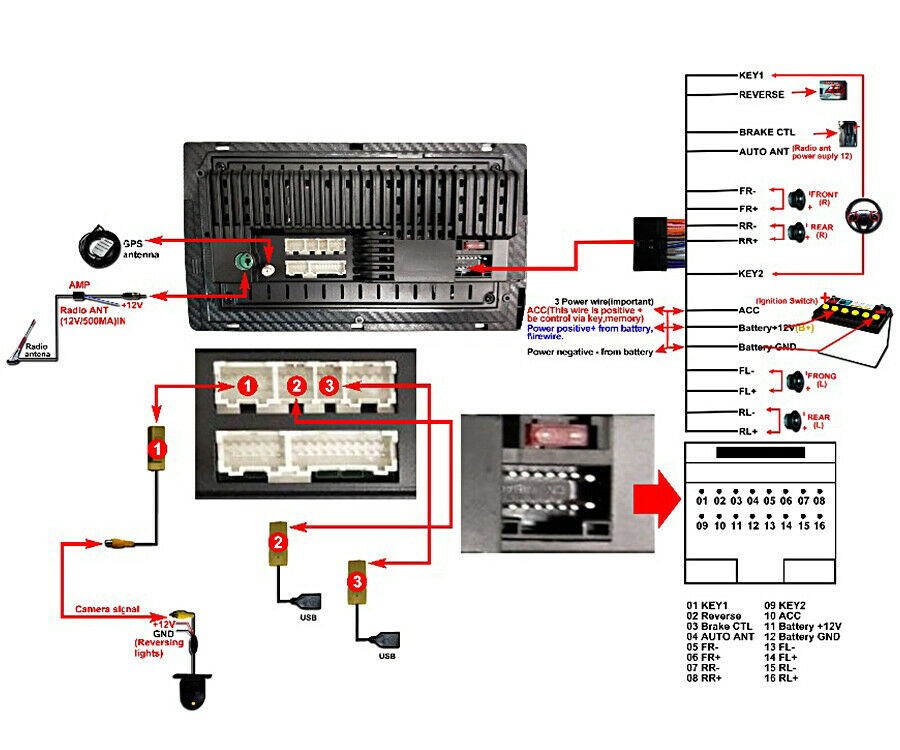 - Rückfahrkamera Anschluss mit automatischer Umschaltfunktion