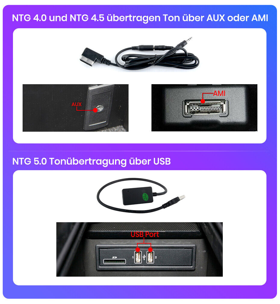 - Built-in Bluetooth 5, unterstützt ebenfalls Original Bluetooth des Fahrzeuges.