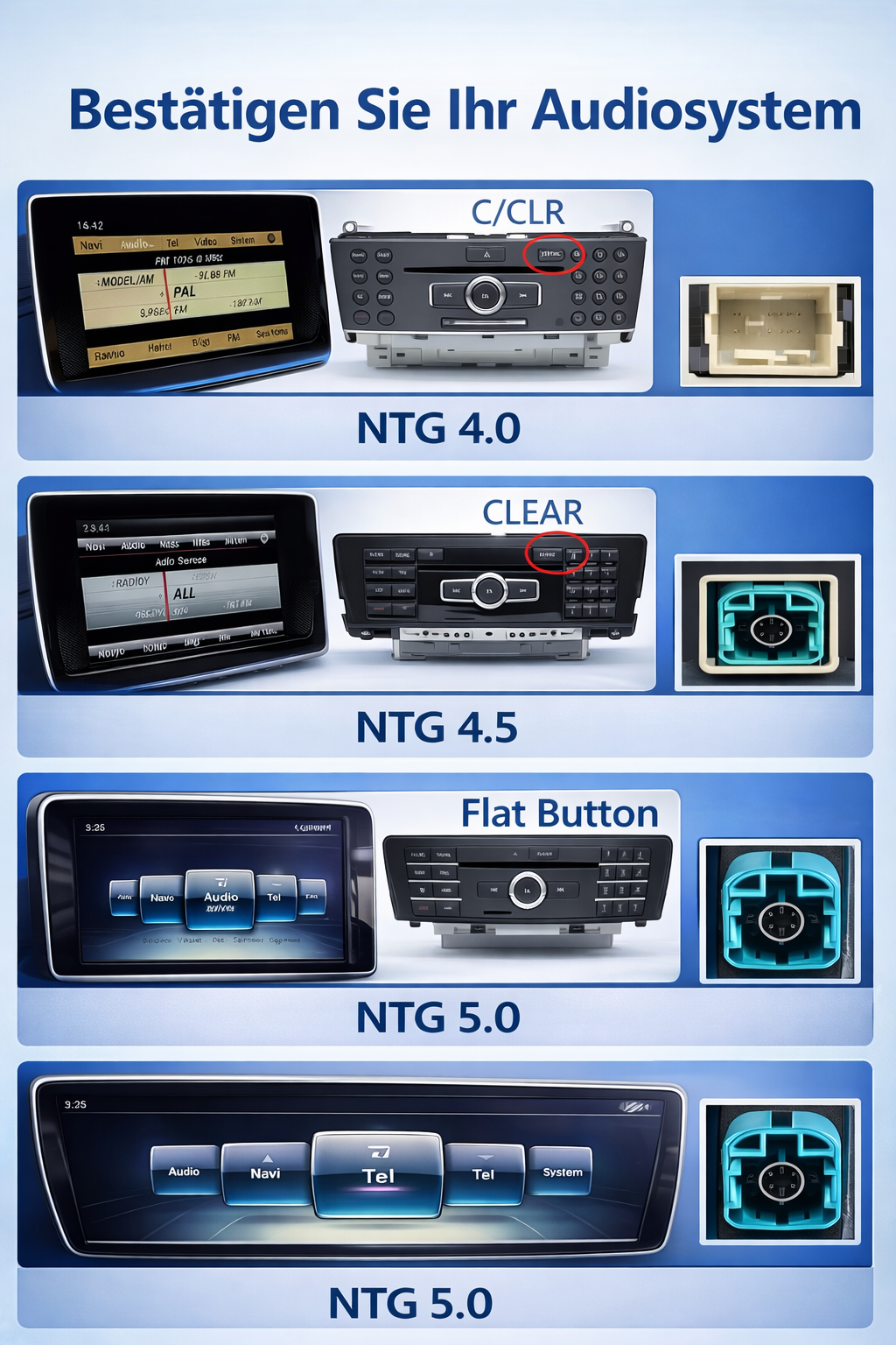 2. Dieses Gerät unterstützt NUR NTG 5.0 / 5.1 / 5.2 System, bitte bestätigen