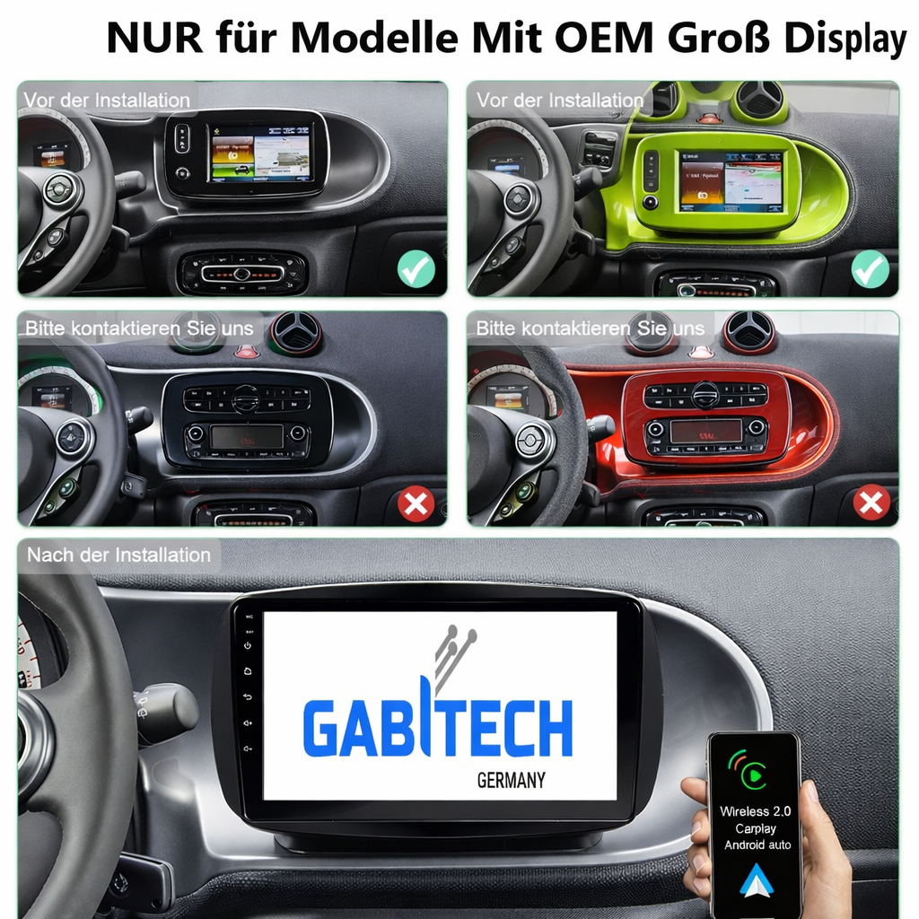Produktinformationen "Für Mercedes Smart Fortwo 2014-2022. 9 zoll android 15 Autoradio GPS Navi Wifi 64GB ROM 4GB RAM Drahtlos Carplay und Android Auto RDS Bluetooth"