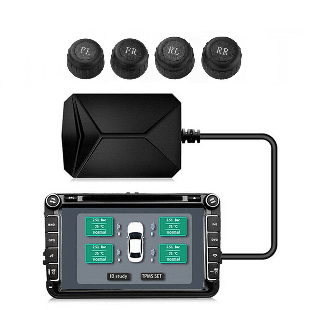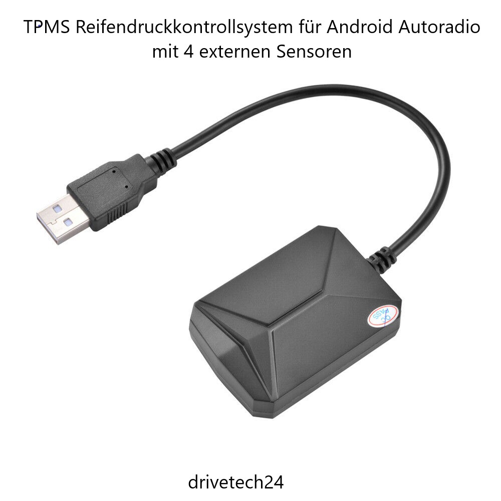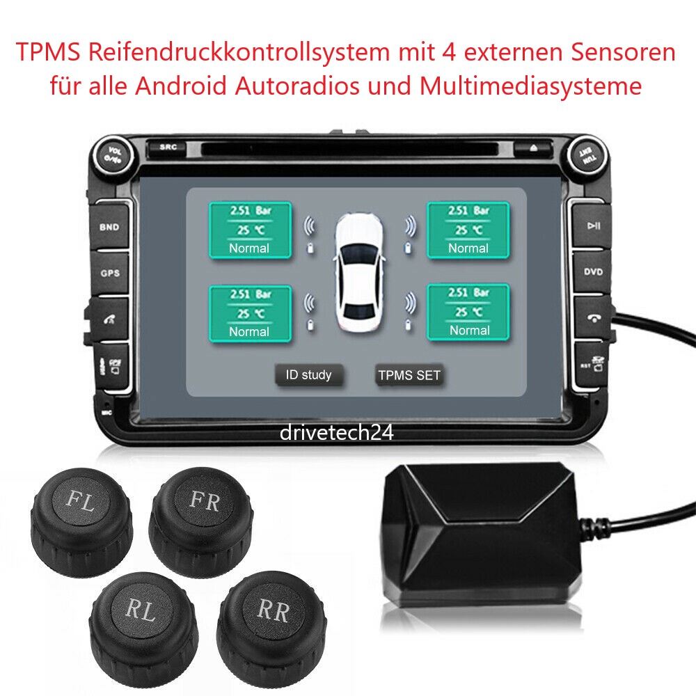 TPMS Reifendruckkontrollsystem mit 4 externen Sensoren für alle Android( Betriebssystem ab Version 4.4) Autoradios und Multimediasysteme.