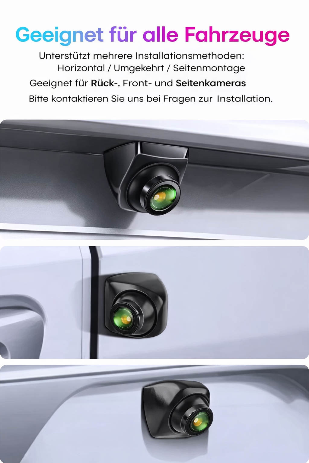 Diese Kamera ist kompatibel mit nahezu allen Fahrzeugtypen und unterstützt verschiedene Einbaupositionen:
