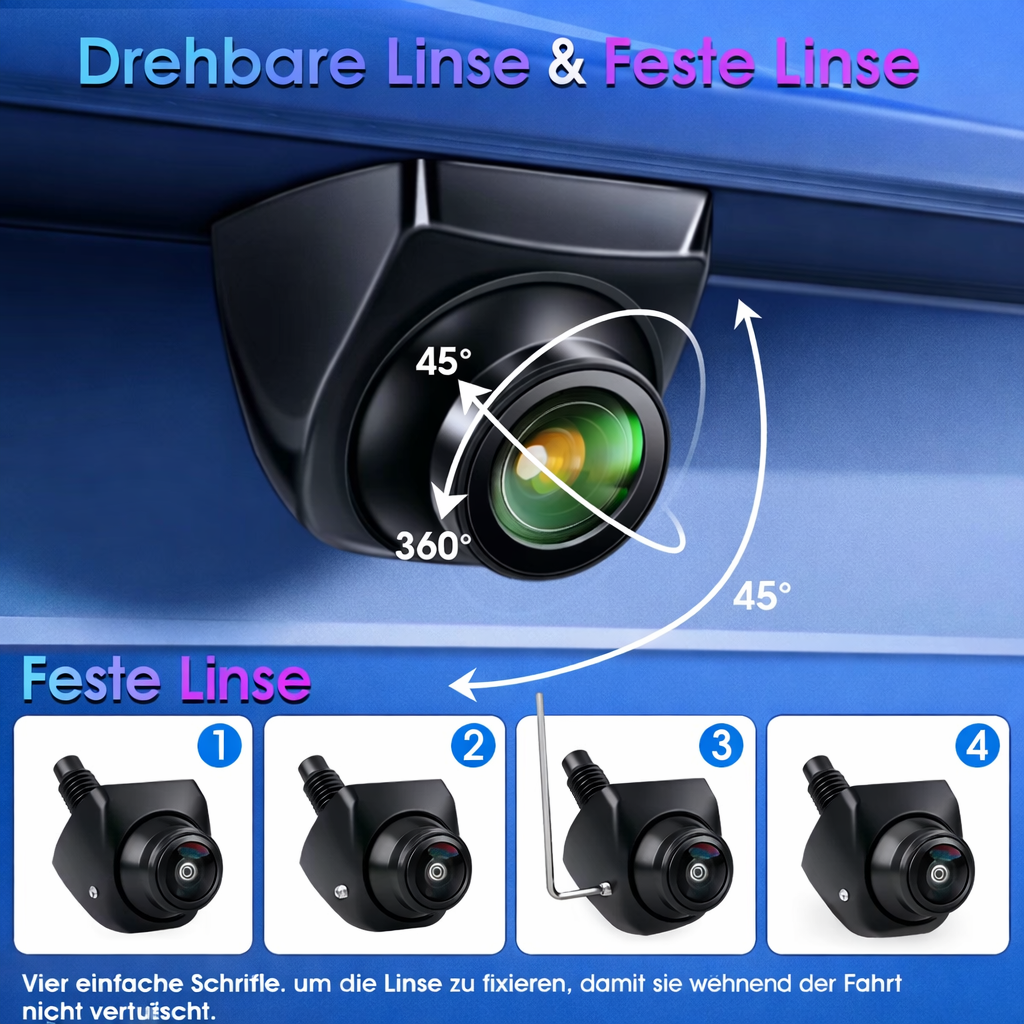 🔧 Universal Rückfahrkamera – HD Qualität mit einstellbarer Linse & IP68 Wasserschutz Mit Fisheye Glass lens