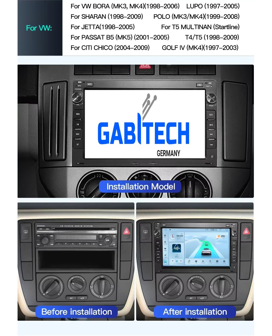 Produktinformationen "für VW SKODA PASSAT BORA POLO SHARAN JETTA LUPO T5 MULTIVANT Ibiza Leon SKODA PEUGEOT FORD GALAXY Android 15 Autoradio GPS Navi Wifi USB Bluetooth, Drahtlos Carplay und Android Auto"