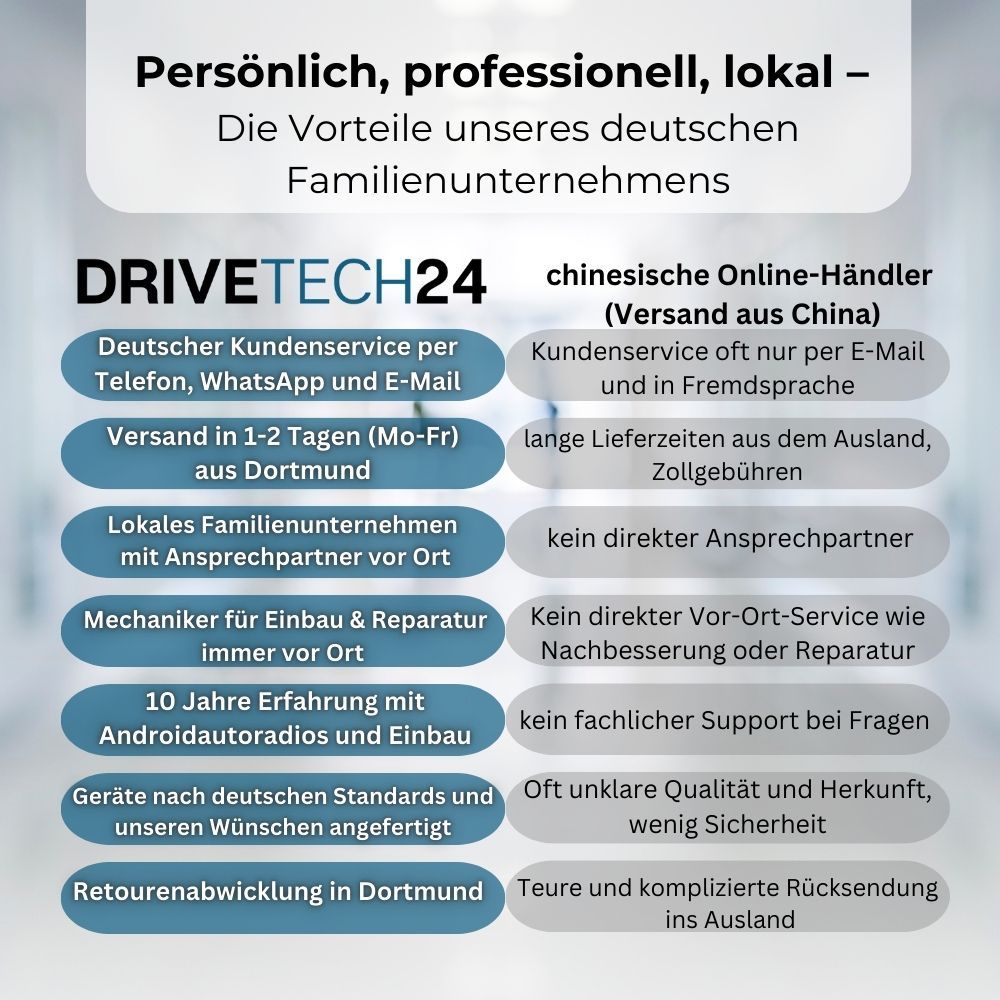 Drivetech24 ist Ihr zuverlässiger Partner für moderne Android-Autoradios und professionellen Support.